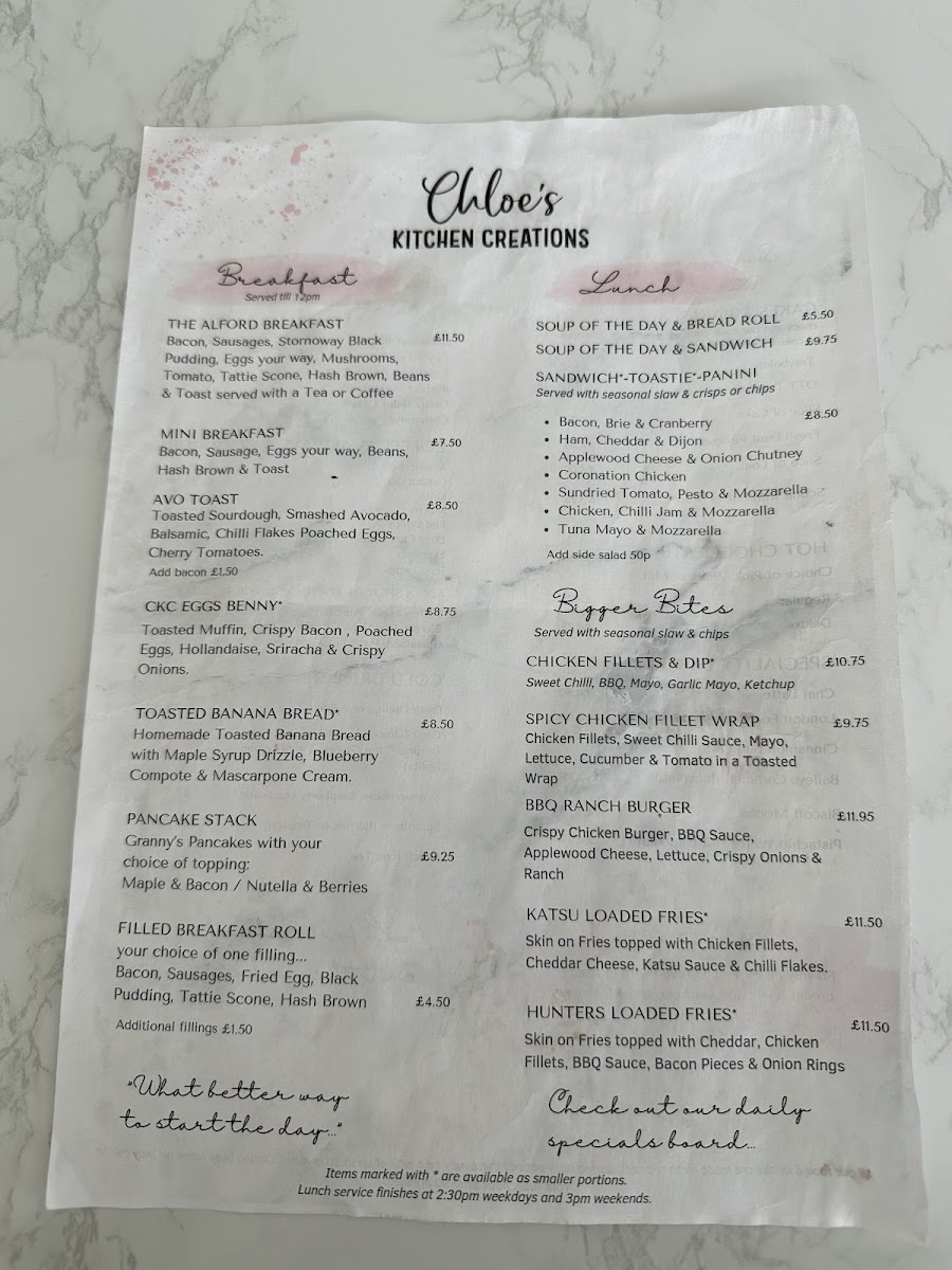 Welcome to Chloe’s Kitchen Creations, a delightful café nestled in the heart of Alford at Victoria Buildings. This charming spot is more than just a place to grab a bite; it's a haven for food enthusiasts and a community gathering space, attracting both locals and visitors alike.
